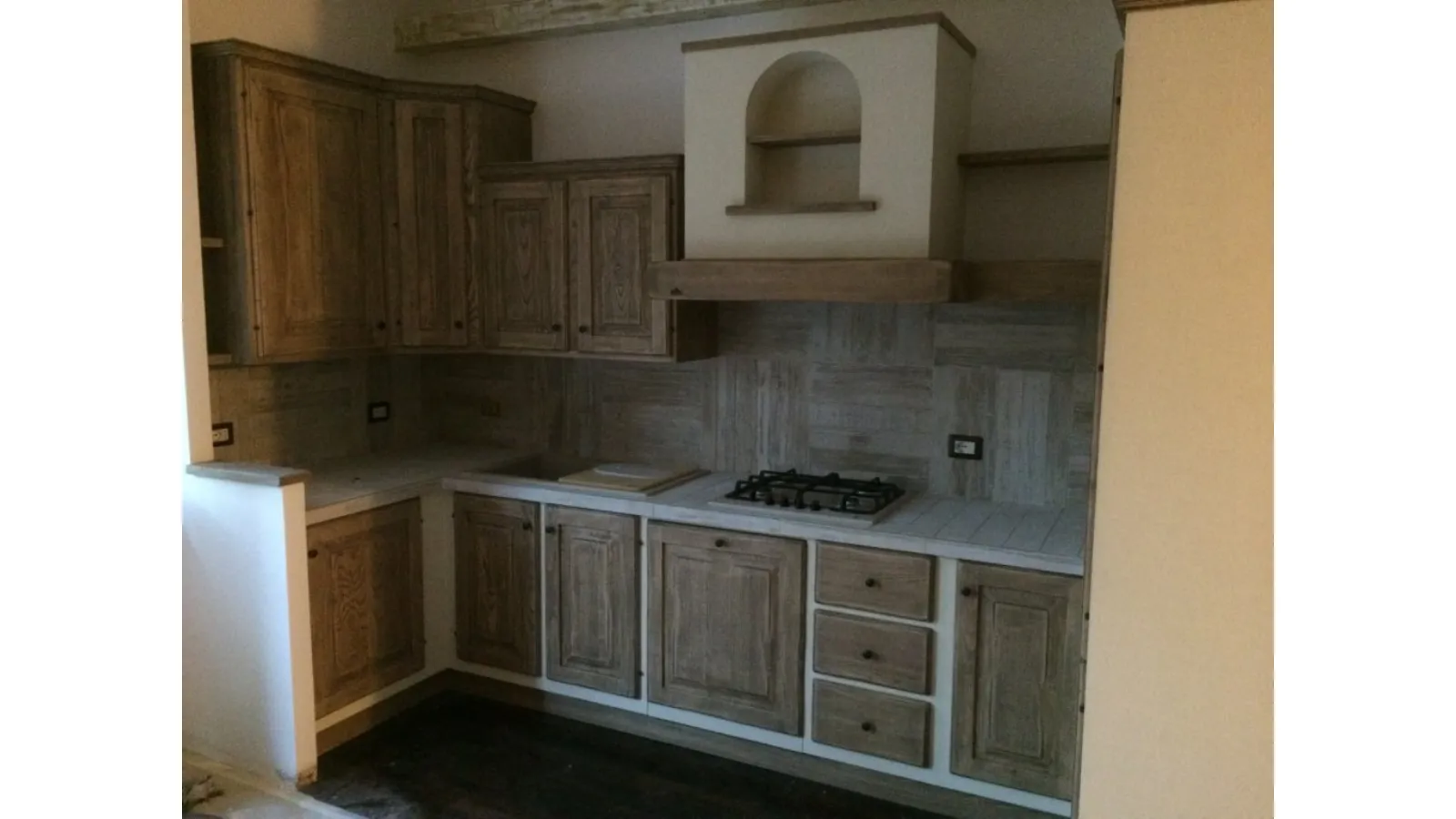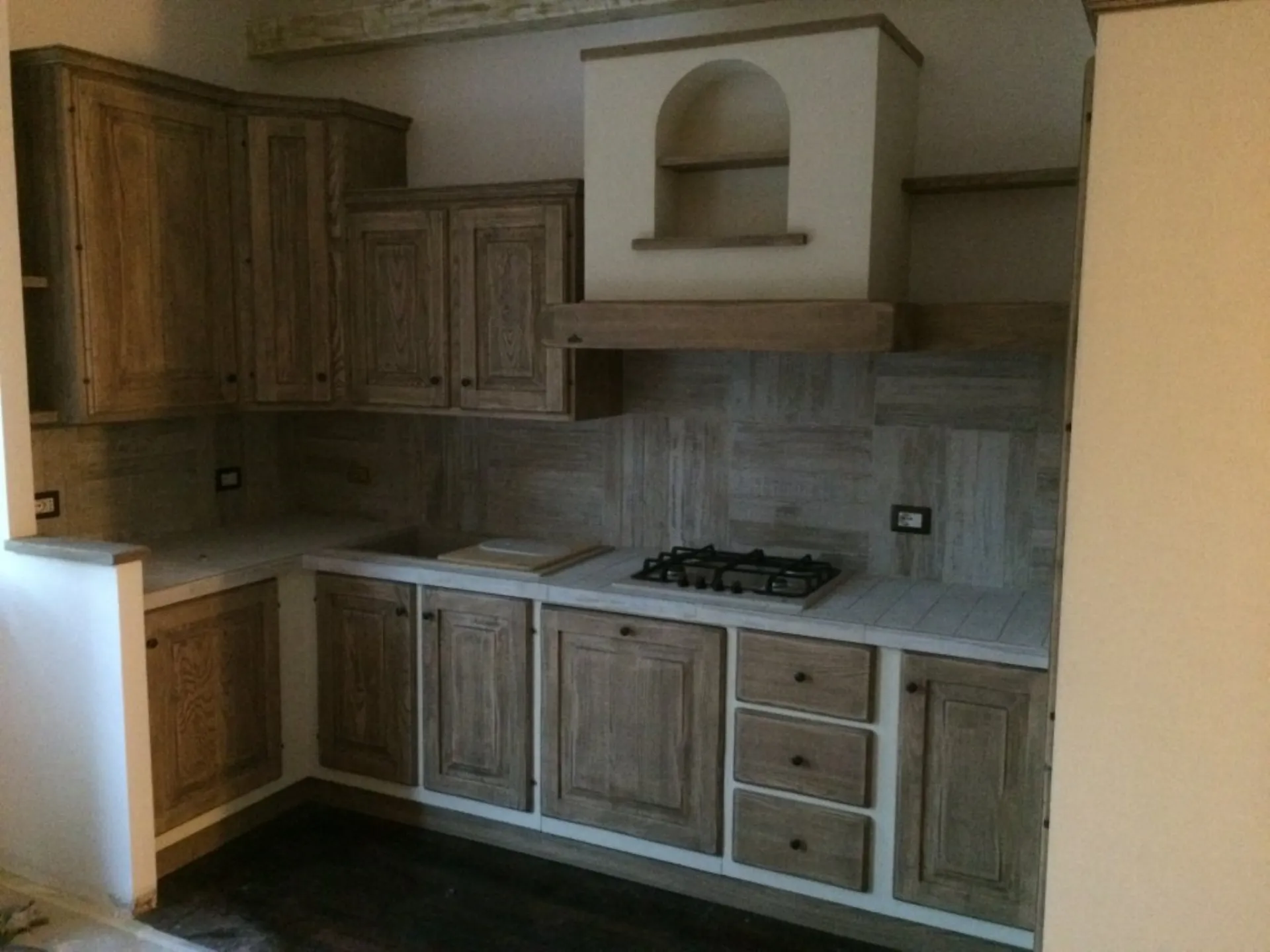 Realizzazione in legno di una cucina su misura semplice ed elegante