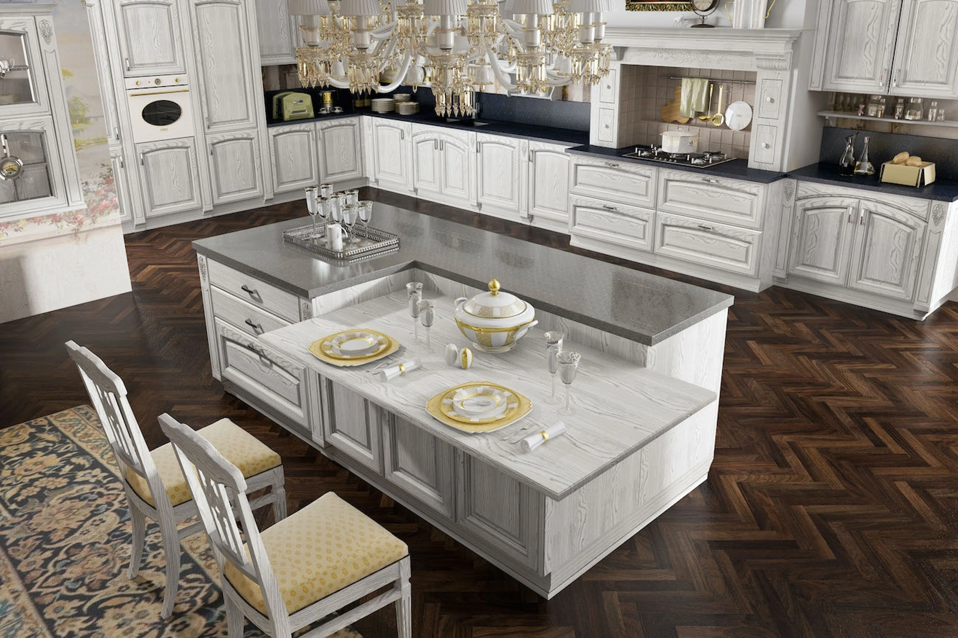 Le Cucine Classiche sono pensate per seguire tutte le problematiche abitative, possiedono linee geometriche che danno la possibilità di sfruttare al meglio lo spazio e un appeal senza tempo. Le composizioni in legno come quella qui presente offrono un notevole vantaggio, quello di essere estremamente resistenti, raffinate e facili da mantenere. Sfruttare al meglio lo spazio oggi è possibile per merito della ricca collezione di modelli con isola di richiamo classico del noto e rinomato brand Home Cucine.