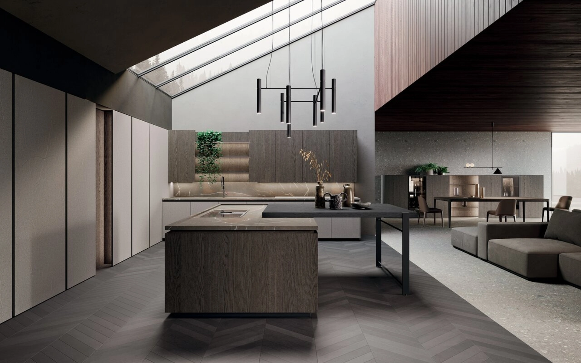 Cucina Design con isola e penisola Bluna Legno di Binova