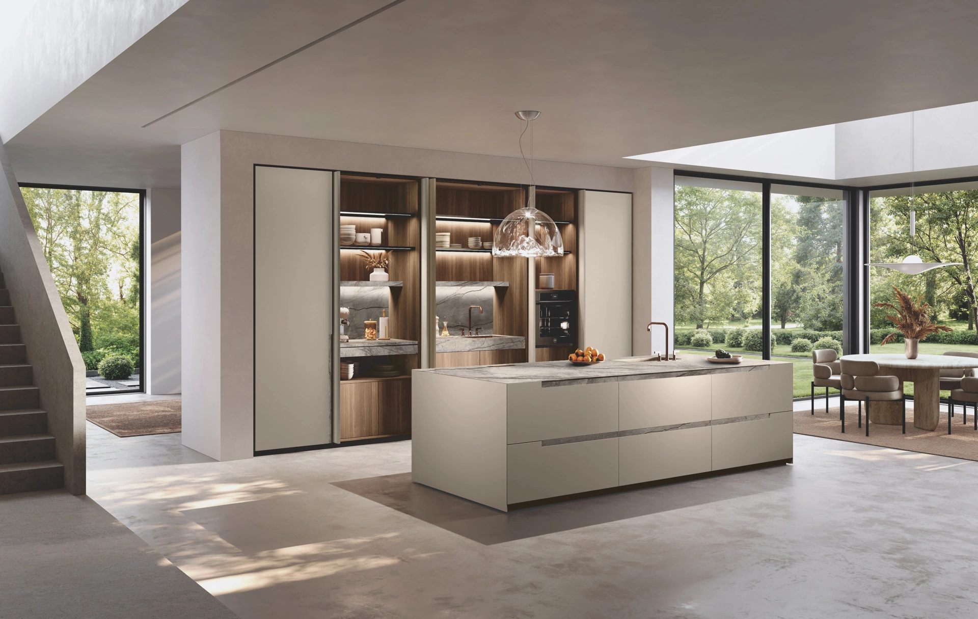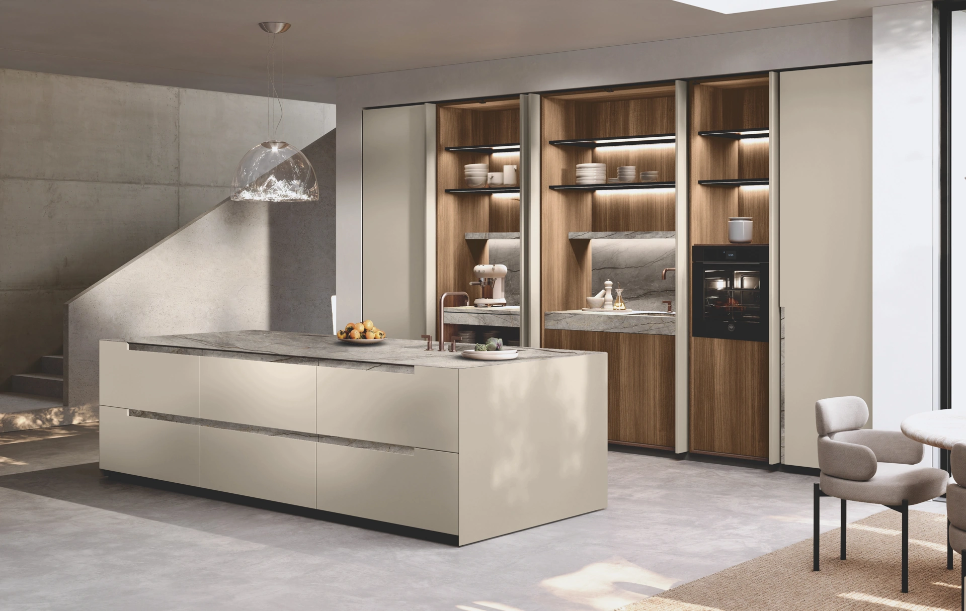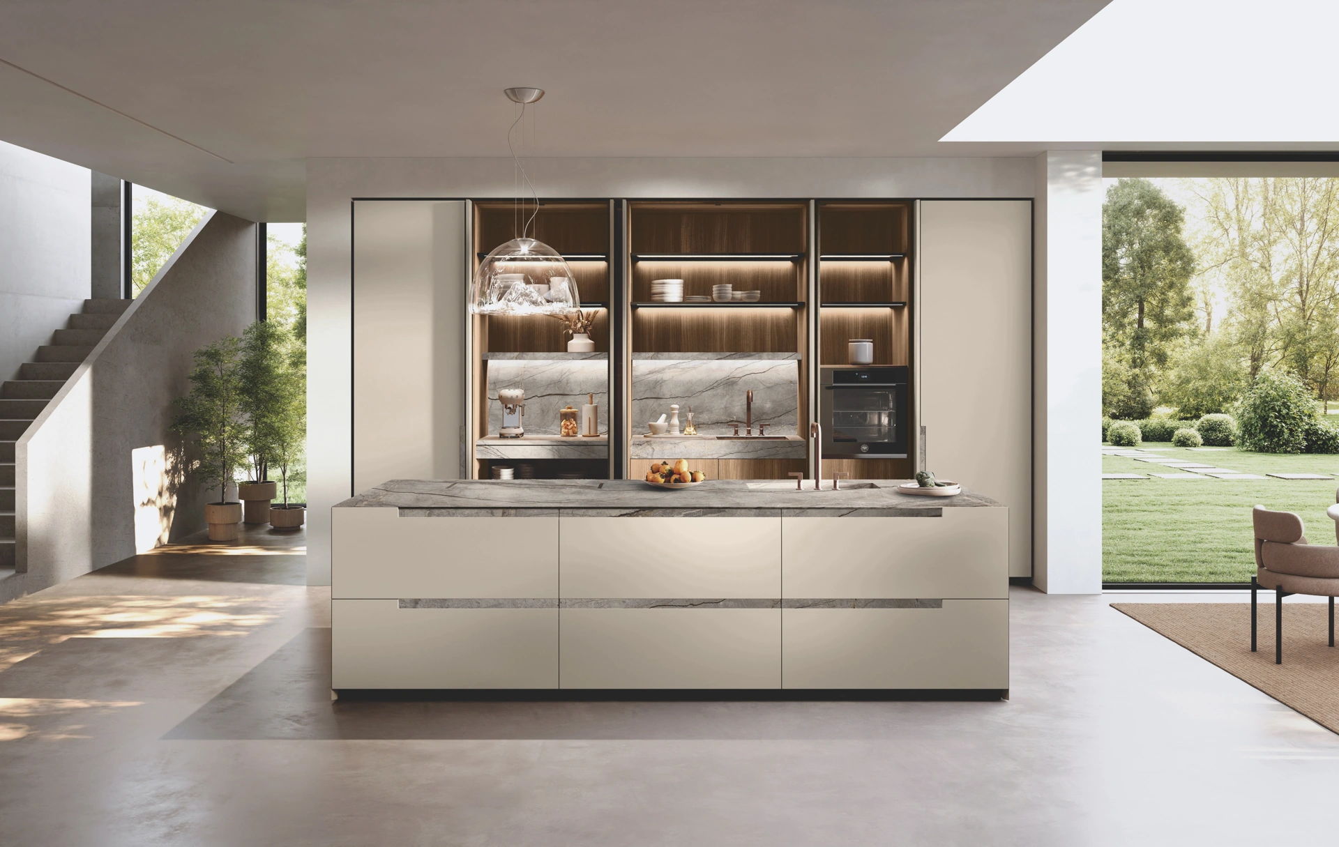 Le Cucine Design con isola in laccato opaco dei migliori brand ti attendono: scopri il modello Bluna Maniglia Stone