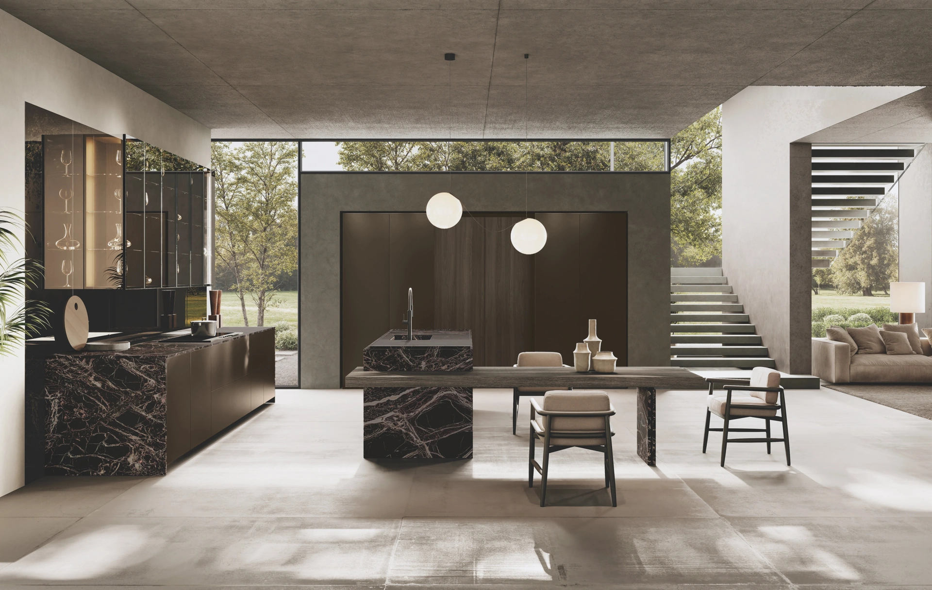 Cucina Design con isola Bluna Tech Alluminio di Binova