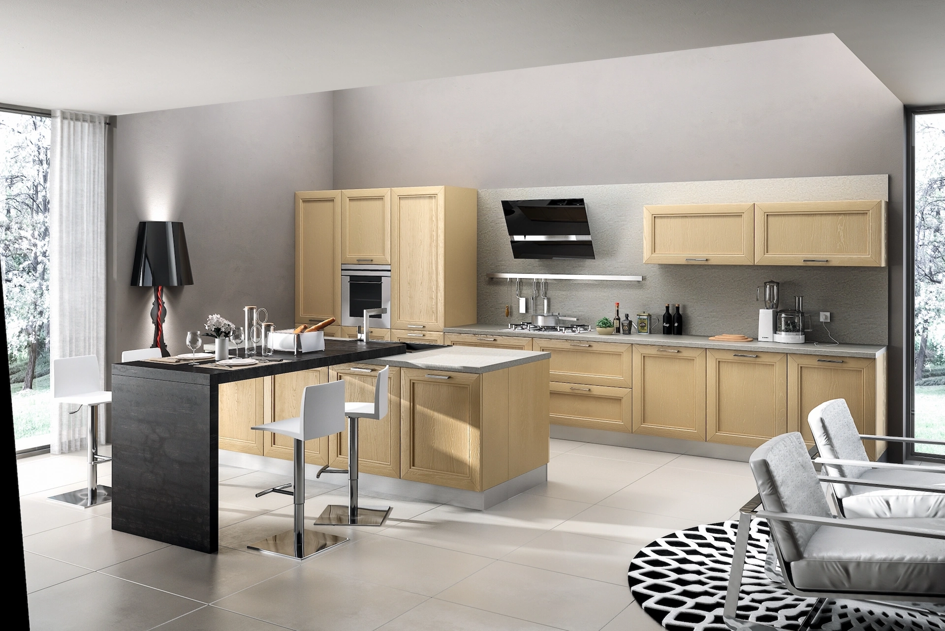 Tra i diversi modelli presenti nel catalogo Home Cucine, la cucina nell'immagine rende lo spazio altamente fruibile e danno la possibilità di godere degli ambienti domestici appieno. Realizza con noi un progetto su misura: per vivere in pieno agio il tuo habitat, i nostri arredatori sono pronti a guidarti con serietà nell’acquisto. Le Cucine Moderne del brand Home Cucine possiedono un effetto di generale armonia tra mood moderno, progettazione attenta, praticità e originalità.