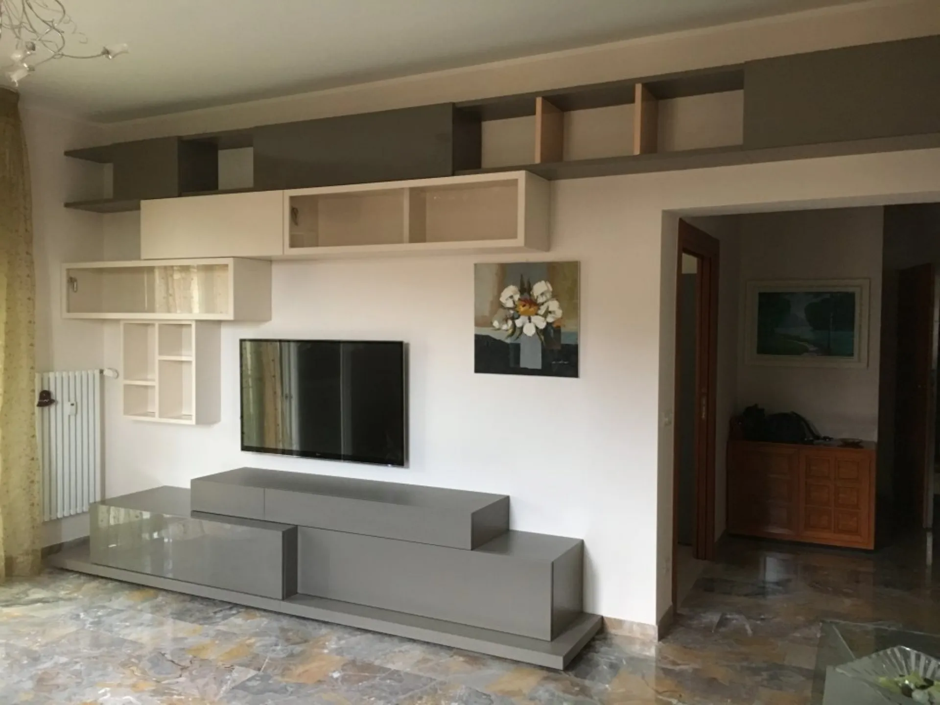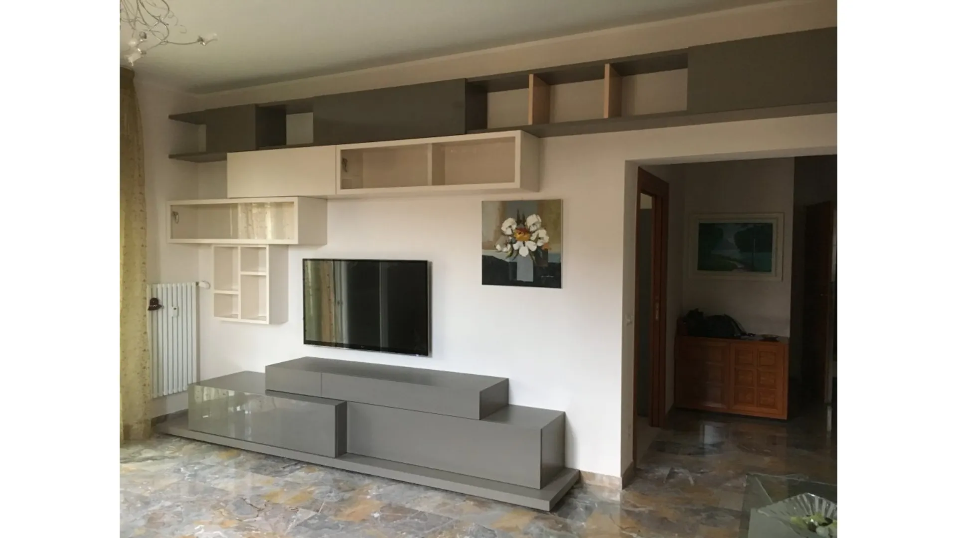 Zona giorno con ante battente e particolari bianchi in stile moderno